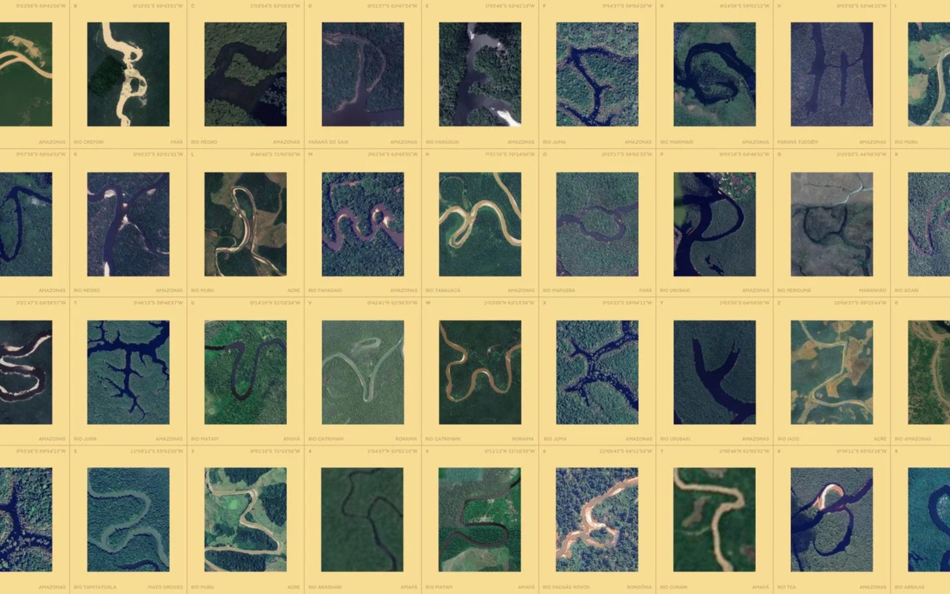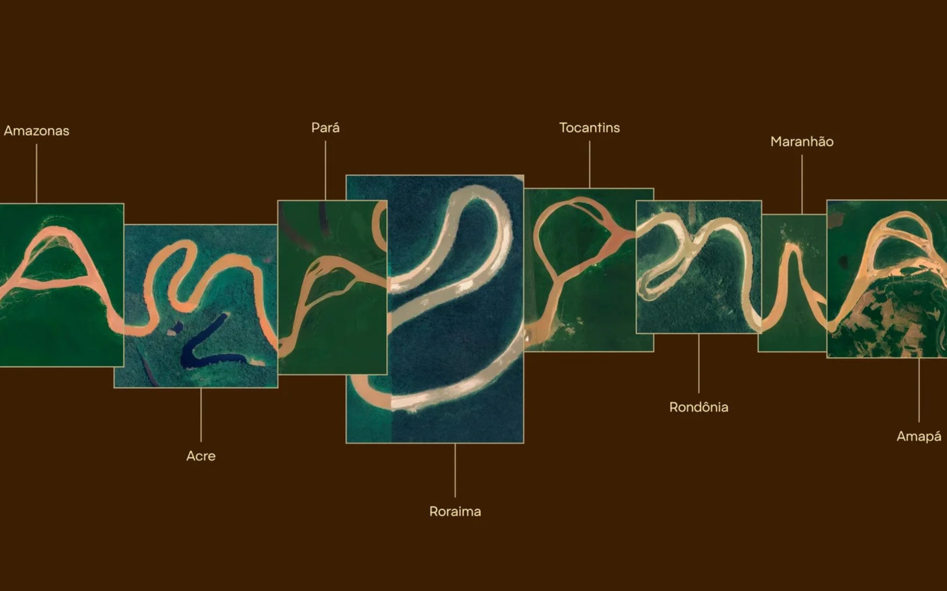 At the heart of the brand design is its logo, which has been drawn using the real twists and turns of the Amazon River tributaries. Using satellite imagery and coordinates, each letter was found within the river system’s natural bends. These letters now make up the typeface ‘Igaratype’, based on the word ‘igarapé’ meaning small stream, which you can use online to write with the waters and export your own Amazonian rivers lettering work. Not dissimilar to NASA’s Landsat platform, which allows you to write your name in Earth’s features found in Landsat images.