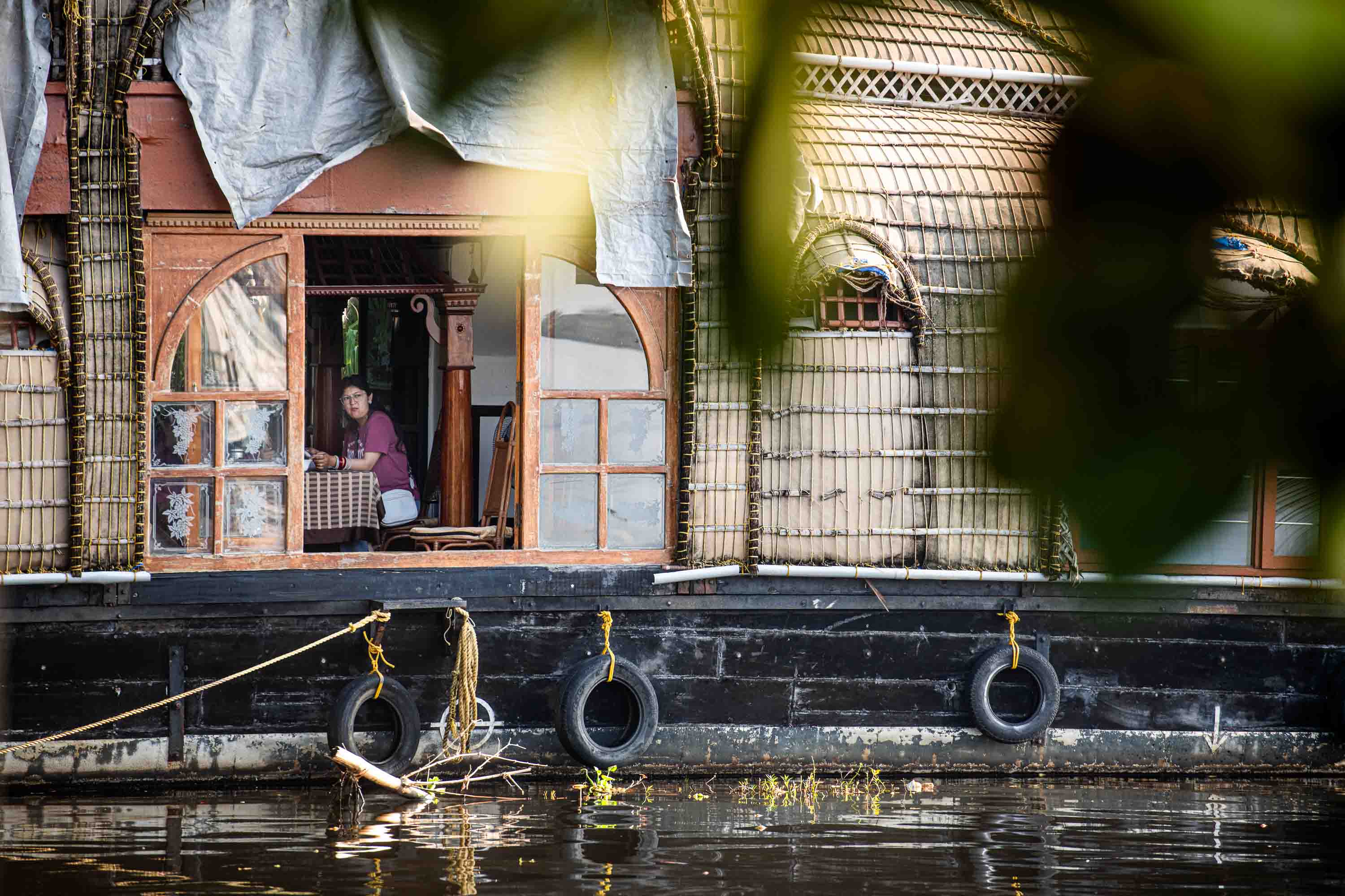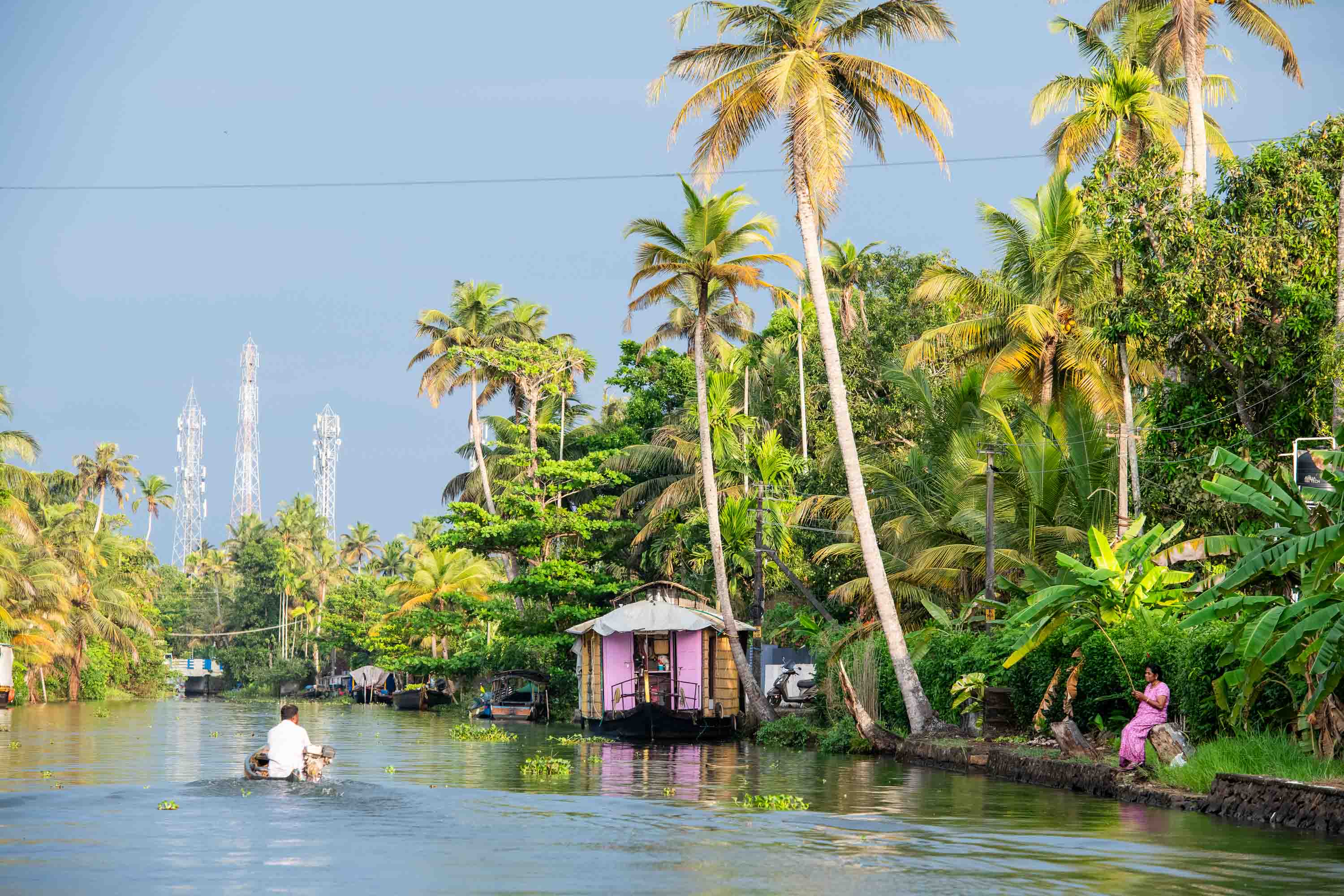 The longer I sit observing the rhythm of daily life along the banks, I begin to wonder about the houseboat industry’s impact on the communities and ecosystems that depend on these waters. I notice some houses along the water’s edge have erected privacy fences. Closer to shore, plastic bottles compete with water lilies for space. Speaking with Joy Jacob, our boat owner, he explains that the industry provides locals with vital, alternative jobs—outside of fishing and farming—and encourages tourist spending in canal-side communities.