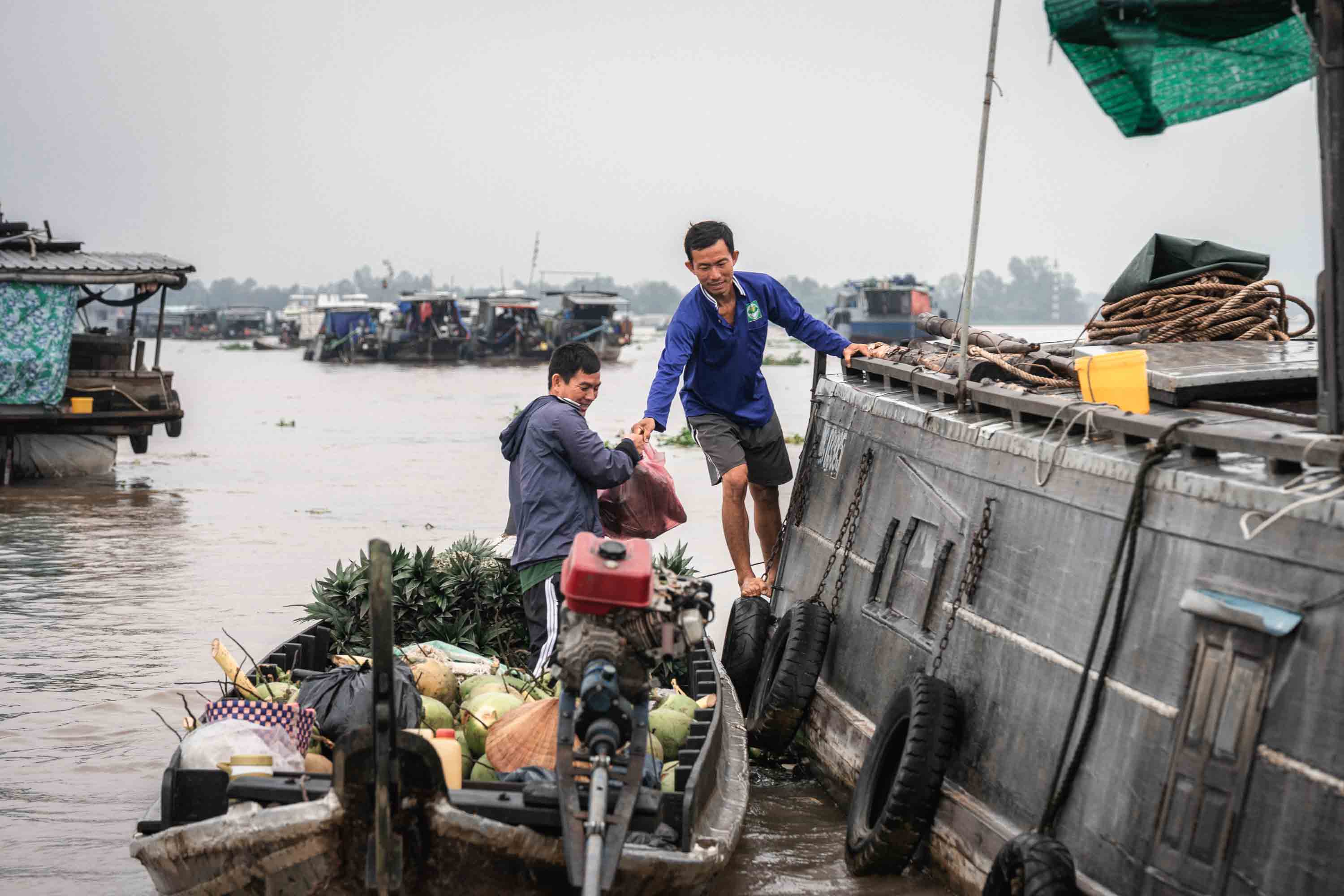 We glide past less human scenes too—hulking mechanics’ barges, floating petrol stations—but even they feel like essential pieces of this riverine puzzle. “The floating market used to be just outside Long Xuyên,” anh Trường tells me as we idle between two floating workshops, “but it grew too big about 20 years ago and had to move further away. Then it just got smaller and smaller.” I ask if one day it will disappear completely and he smiles. “Who knows?”