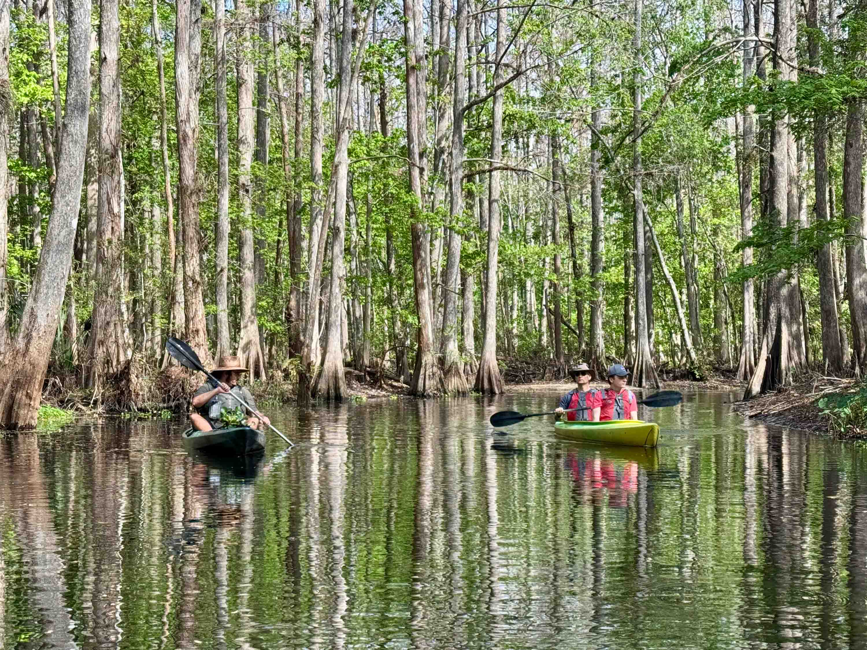 Wildlife being unpredictable though, we see mostly birds. We paddle past wood storks and great egrets hunting in the cypress swamp shallows at Shingle Creek Regional Park. Gopher tortoises and Florida panthers elude us on a hike at the Disney Wildlife Preserve, but we’re charmed by a pair of sandhill cranes and their fluffy chick. In Shell Key Preserve, the water is too cold and turbid to spot manatees, but we watch pelicans inelegantly fish, and red herons chase their prey through the water.